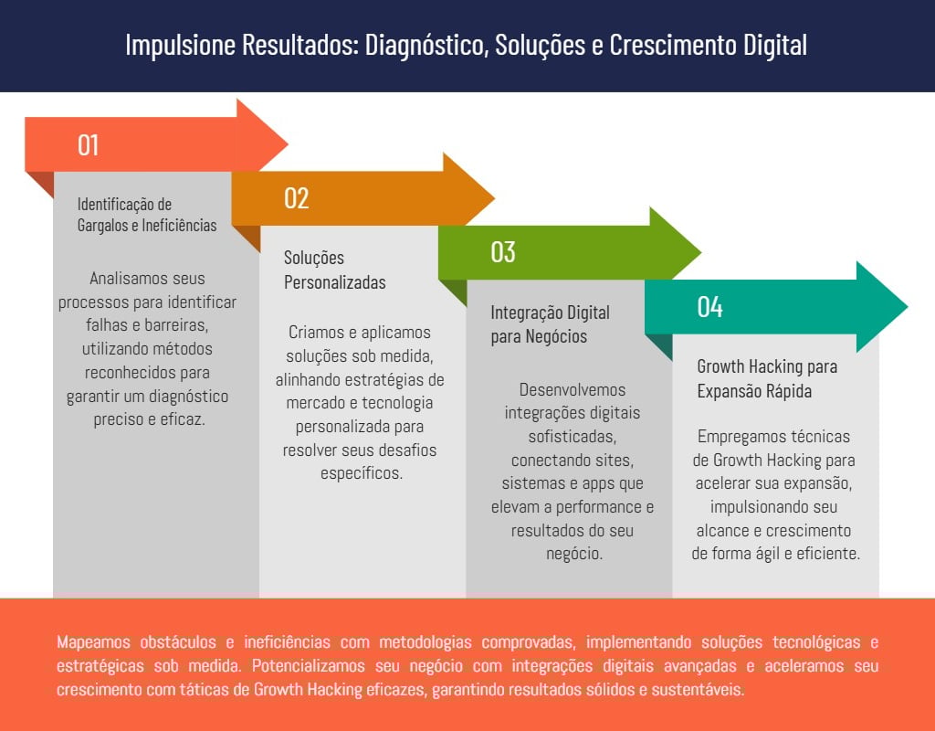 Consultoria empresarial que aplica os métodos PACT e IMPACT para identificar gargalos, definir ICPs, e aplicar estratégias de growth hacking e transformação digital.